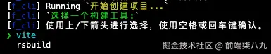 然后,我们在使用交互式构建项目时候,就可以选择vite或者rsbuild作为项目的构建工具了。