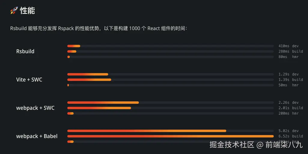 很早就开始关注到Rsbuild的功能。在不久之前,他们将版本信息更新到1.0。在观望了几天之后,发现Rsbuild在打包和开发阶段有着和其他打包工具截然不同的性能优势。所以,我们团队,也在逐步将Vite替换为Rsbuild。