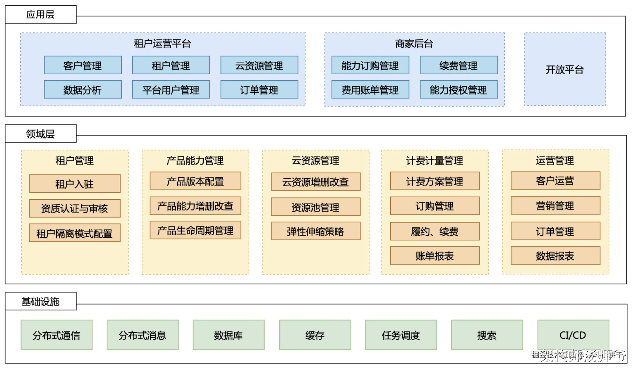 我们看下多租户系统的应用架构是如何从一层层构建起来的。