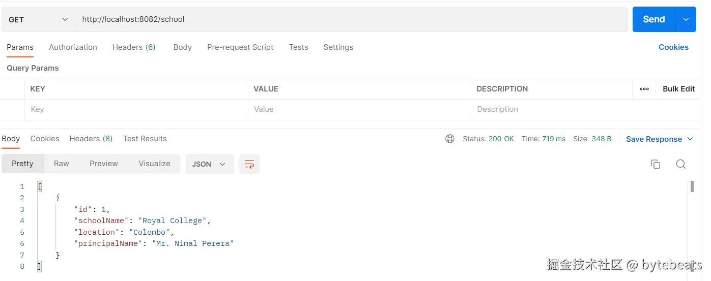spring.application.name属性将应用名称设置为SCHOOL-SERVICE.eureka.client.register-with-eureka属性设置为true, 这意味着应用将向 Eureka 服务器注册.eureka.client.fetch-registry属性设置为`true", 表示应用将从 Eureka 服务器检索注册信息.eureka.client.service-url.defaultZone属性将 Eureka 服务器的 URL 设置为http://localhost:8761/eureka/eureka.instance.hostname属性将实例的主机名设为localhost.