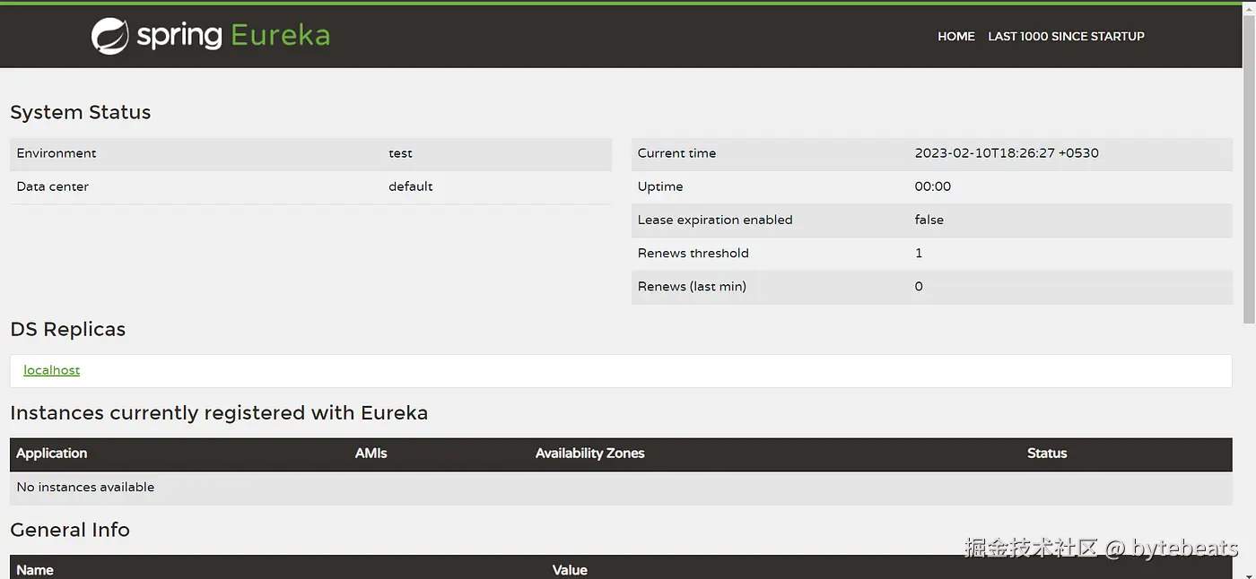 好的. 一切就绪. 现在启动服务注册表, 打开浏览器, 访问 http://localhost:8761. 你应该能看到如下页面.