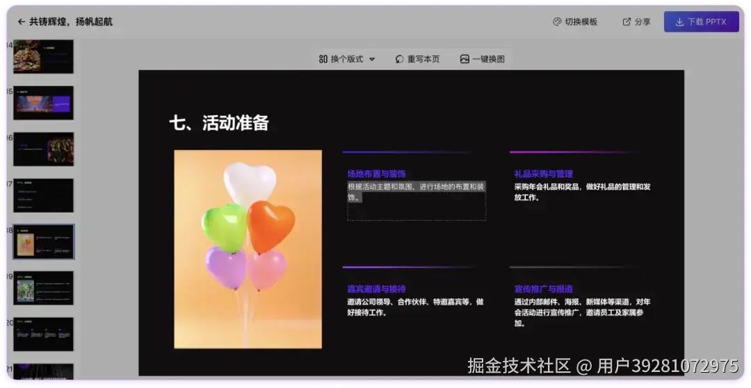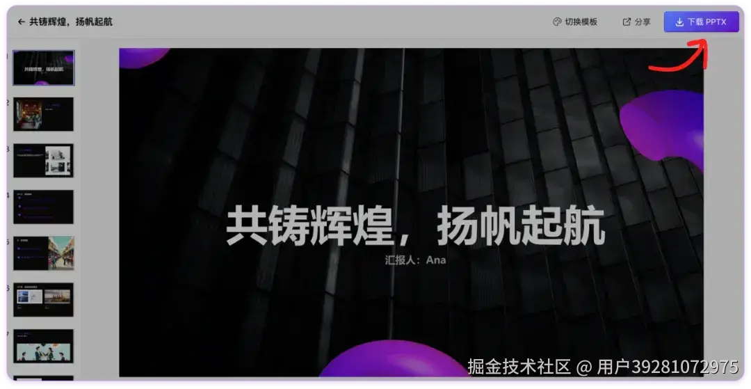 5. 调整完成后,点击「下载 PPTX」即可将 PPT 下载到本地