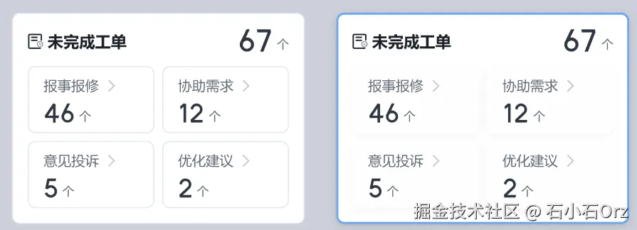 比较麻烦的场景,如文章一开始说的场景,hover后,边框从1px变成2px。这种情况,hover盒子的padding一定会变化(注意大盒子尺寸是固定的),必然会导致内部元素被挤压,位置改变。