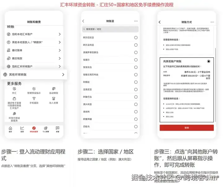 汇丰环球资金转账-汇往50多个国家和地区免手续费操作流程