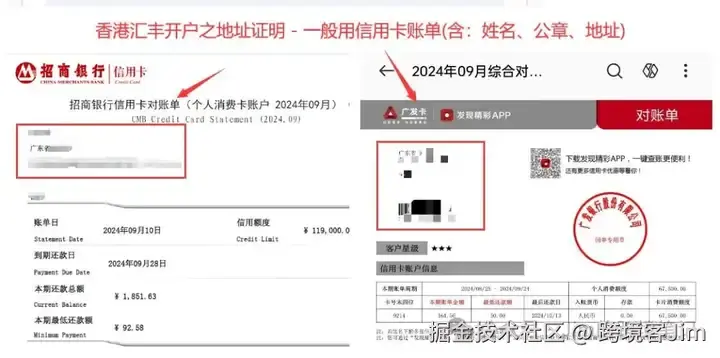 香港汇丰开户至地址证明 - 一般用信用卡账户