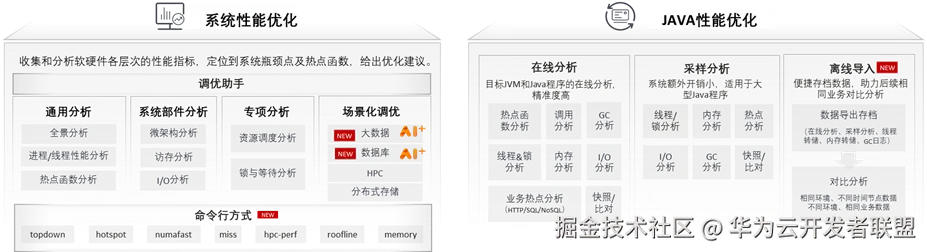 自动采集系统数据,分析出系统性能指标,定位到瓶颈点及热点函数,给出调优建议,从而达到软件和鲲鹏平台融合的最佳性能。
