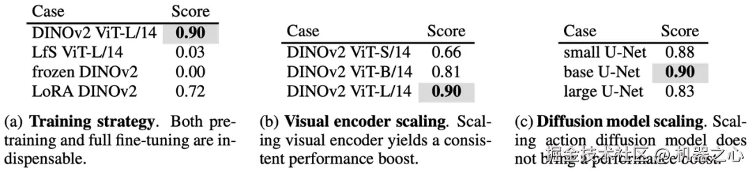 除了数据规模,研究团队还在模型规模化方面有三个重要发现: