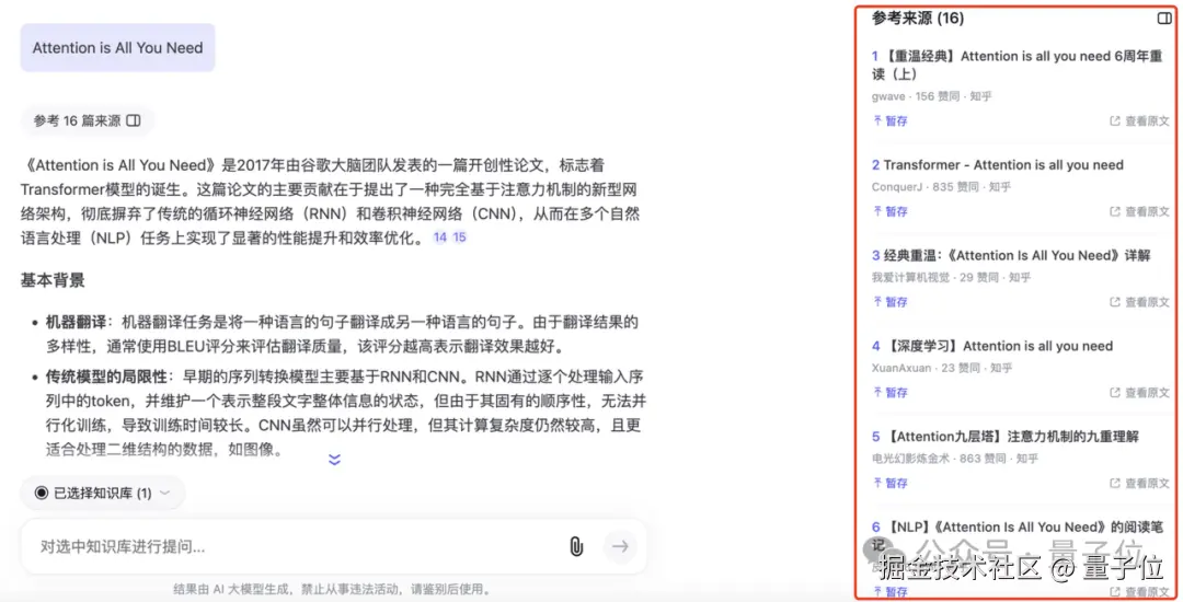 也就是说,当你想对某个研究方向、研究课题进行更深入的了解时,不用费劲下载论文、跳转其他 AI 工具,直接就可以指定参考链接,跟知乎的大模型展开细节讨论。