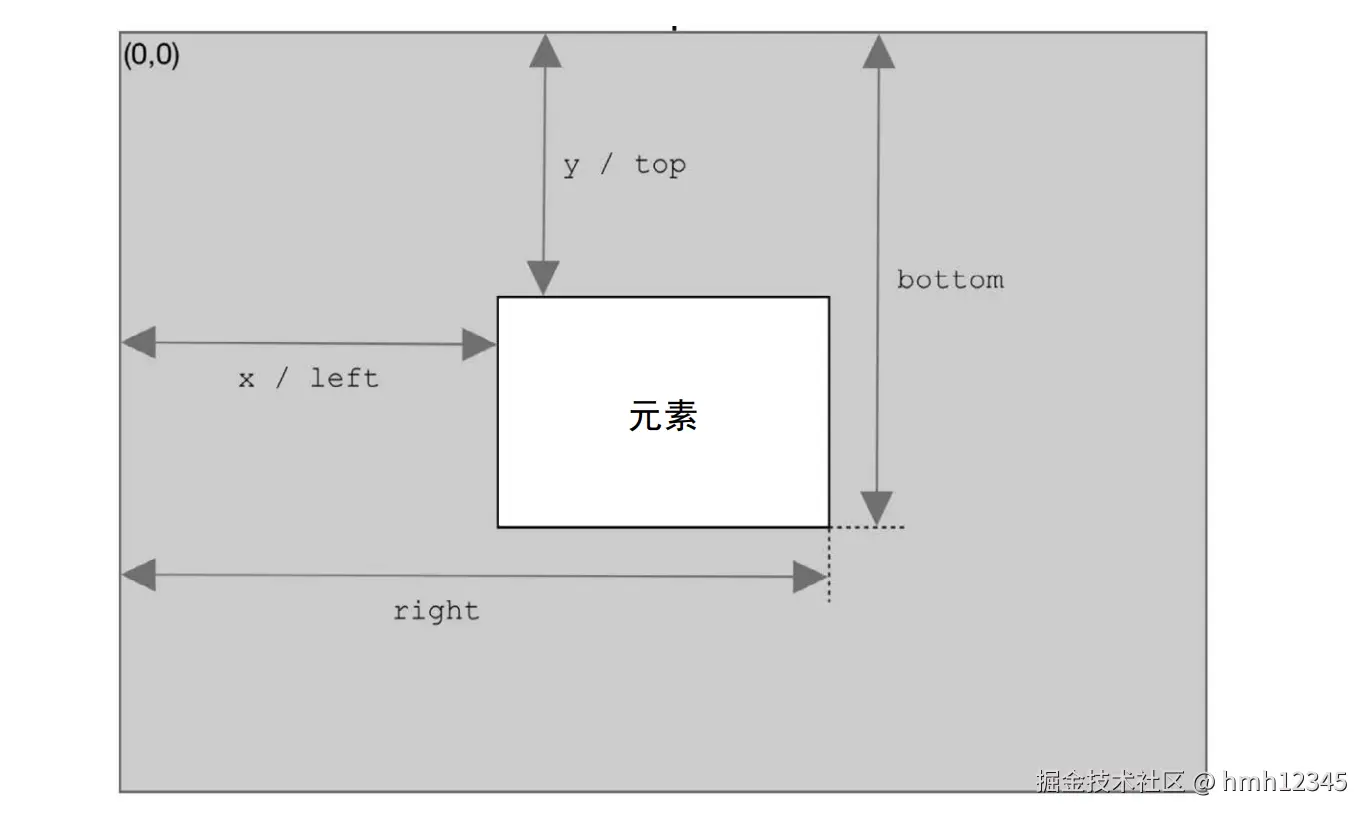 - 返回一个 DOMRect 对象,包含 6 个属性:left、top、right、bottom、height 和 width