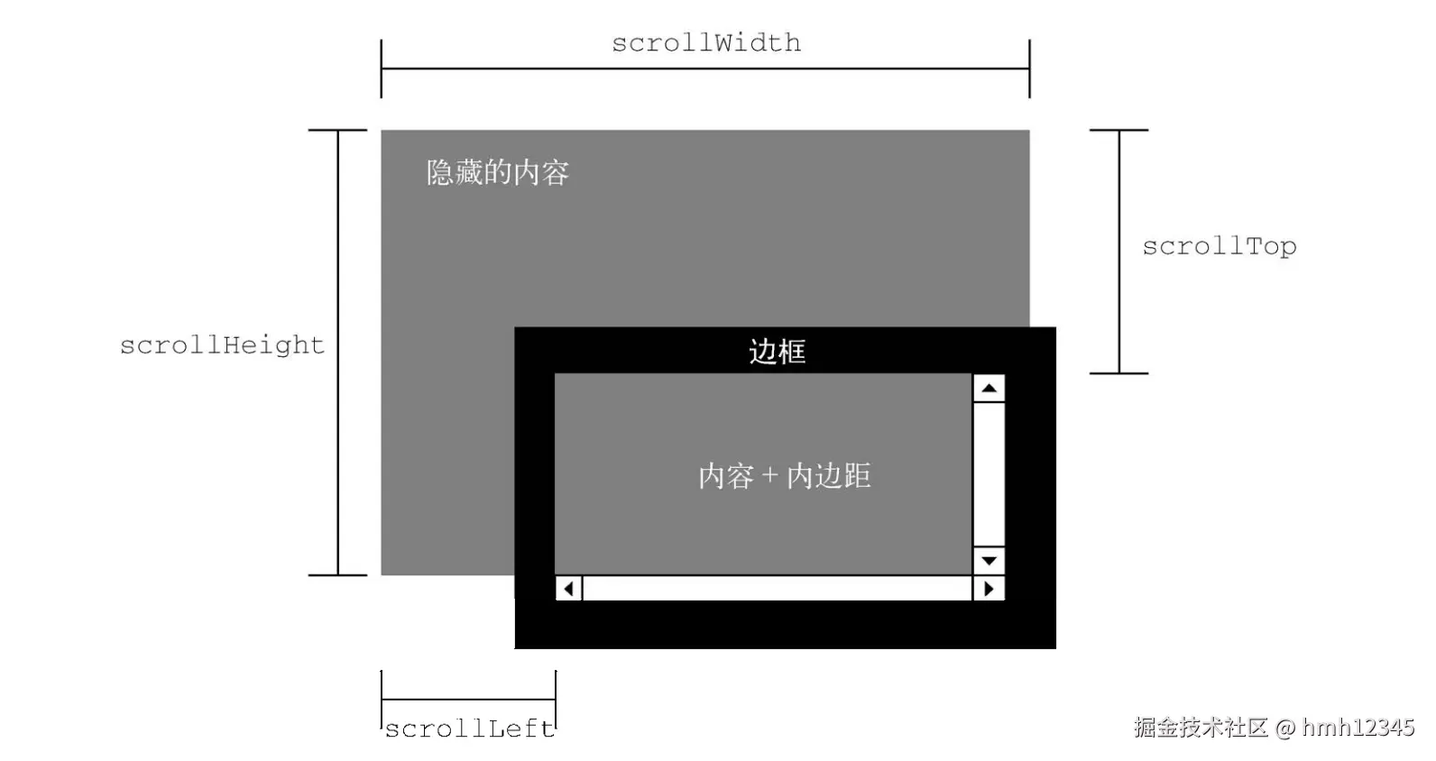 - scrollLeft/scrollHeight,元素左/上不可见的距离,可写,可以通过修改scrollTop修改滚动距离