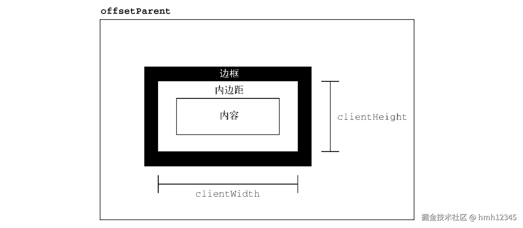- offsetHeight: content + padding + border + 水平滚动条的宽度