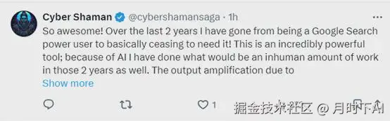太棒了!在过去的两年里,我从一个谷歌搜索的高级用户变成了几乎不再需要它!这是一个非常强大的工具由于节省的时间所带来的输出放大效应,使得我有时间进行更多的工作、研究和项目!