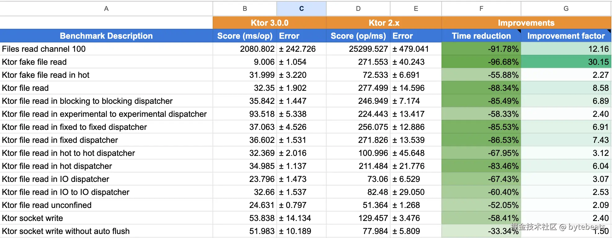 我们的IO 基准 测试基于真实的 Ktor 应用, 结果令人印象深刻. 一些测试结果表明, 性能提高了 90%以上, 我们还在努力进行更多改进.