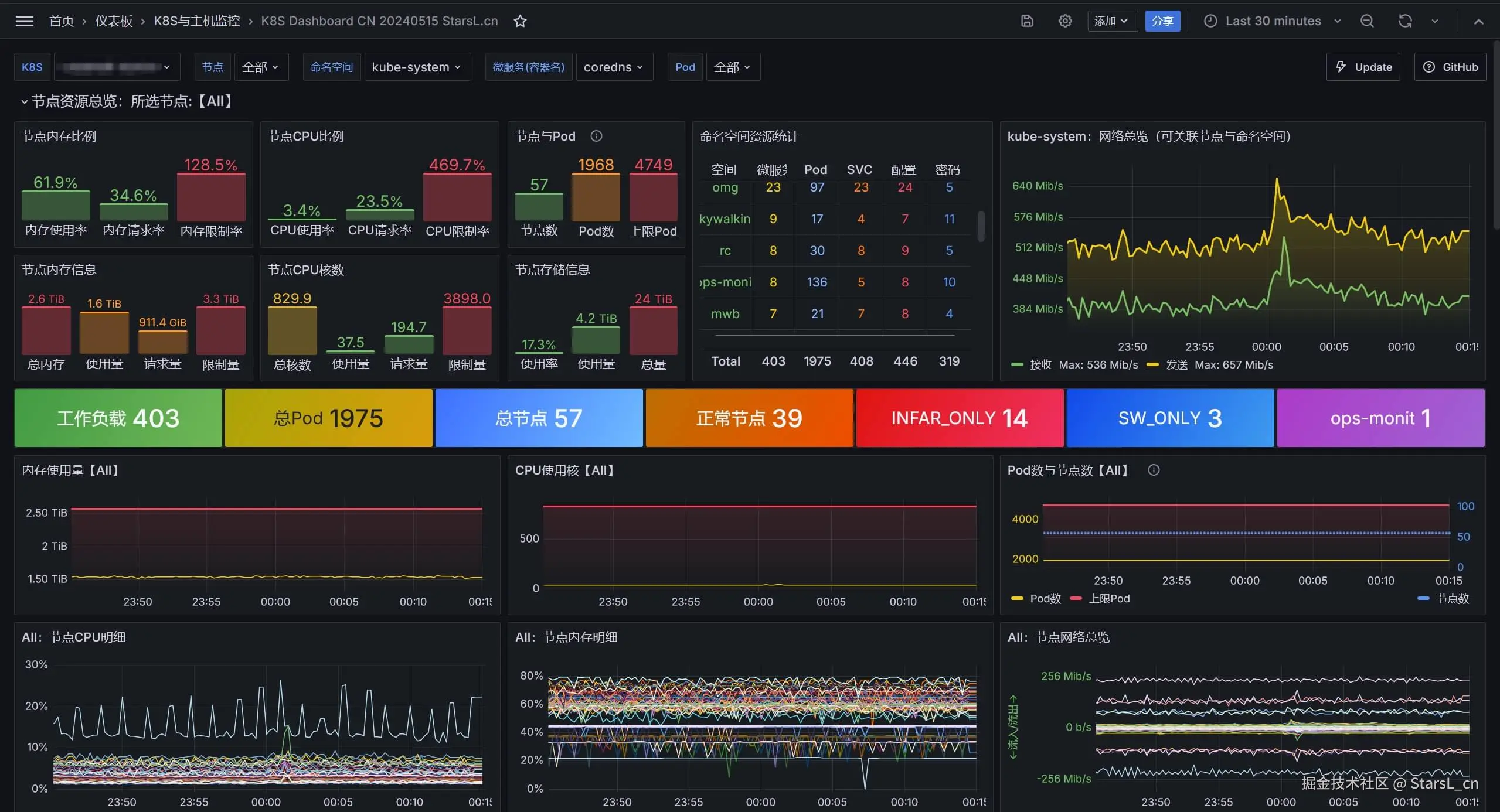 kubernetes资源全面展示!包含K8S整体资源总览、微服务资源明细、Pod资源明细及K8S网络带宽,优化重要指标展示。
