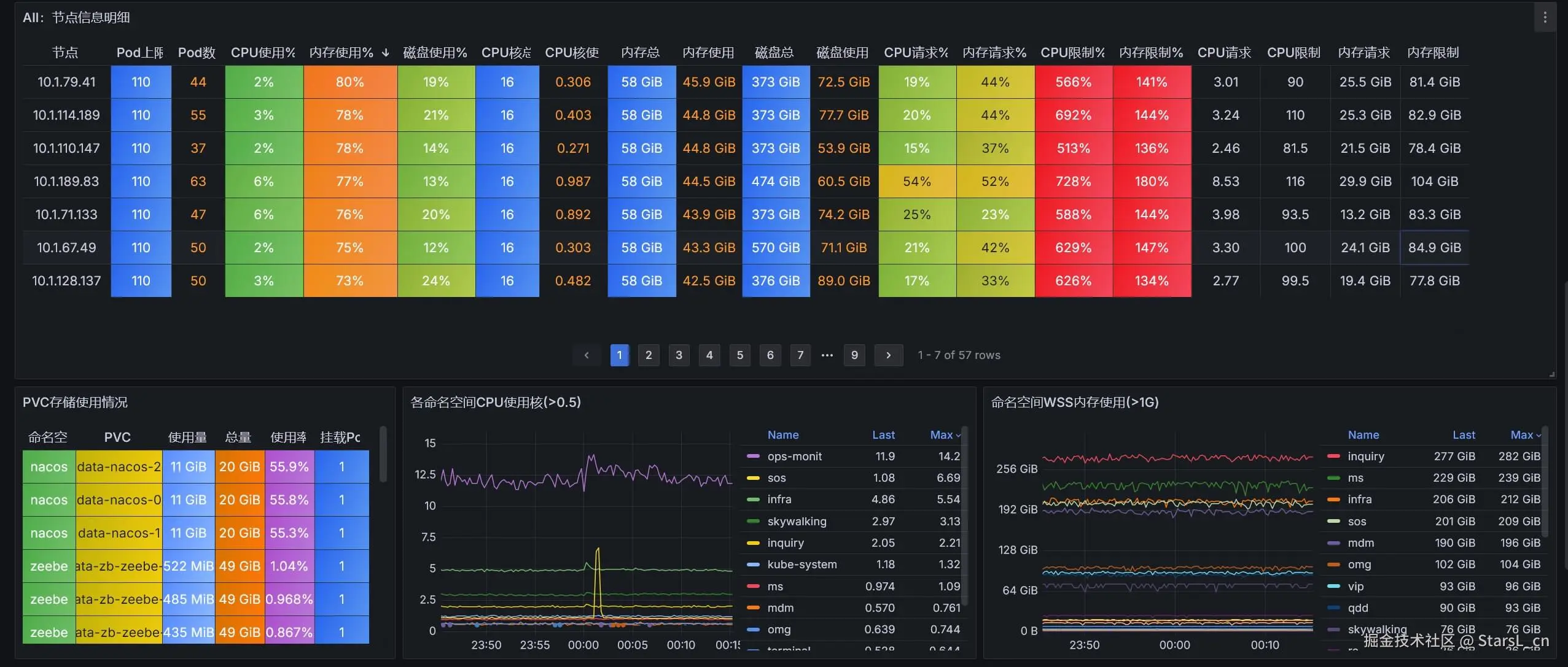 - 总览页的节点明细表格更新为grafana7的样式,增加了各节点资源的使用比例并标记颜色。