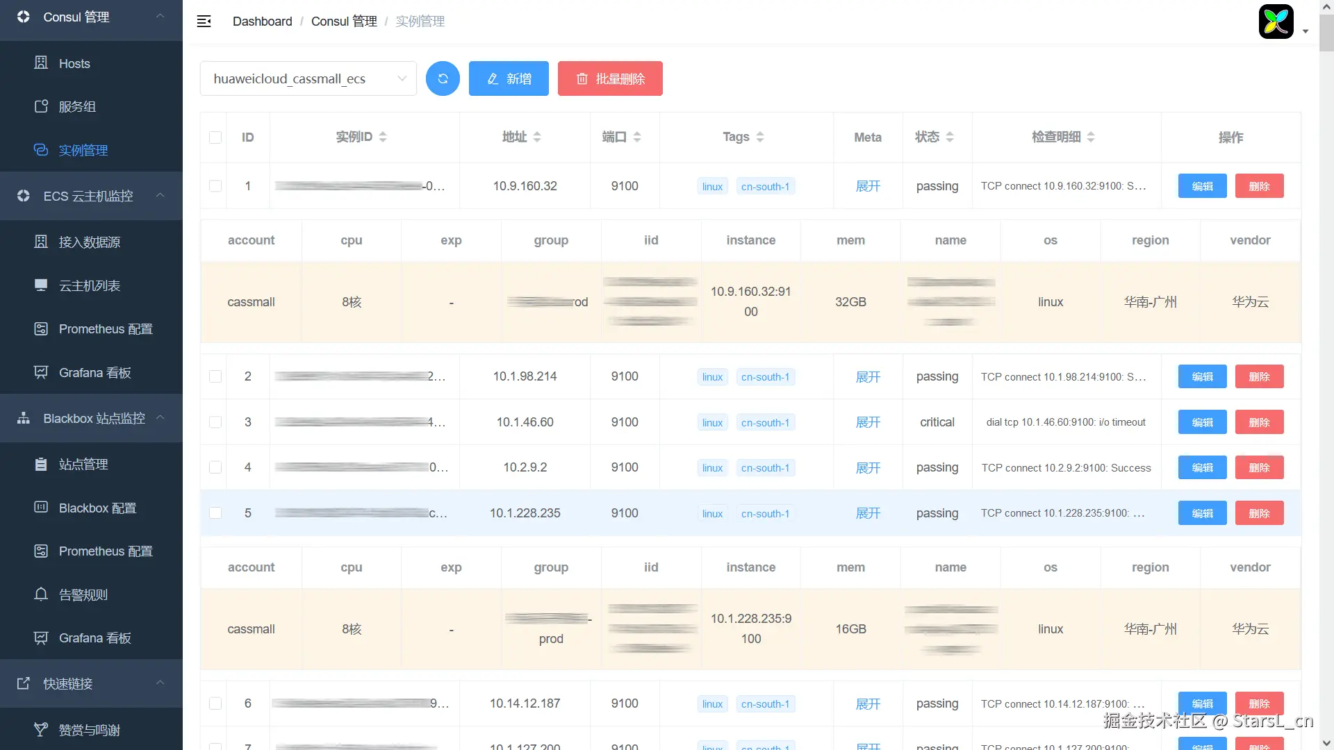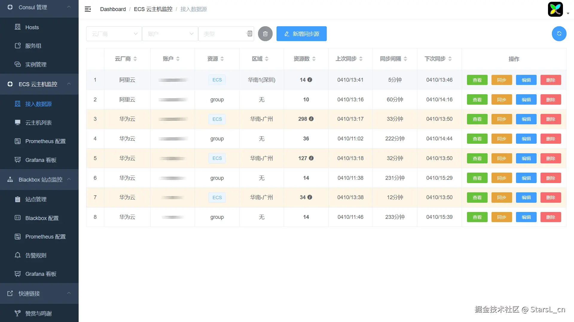 - ⭐支持多云ECS/RDS/Redis的资源、分组、标签自动同步到Consul并接入到Prometheus自动发现!(并提供云资源信息查询与自定义页面)