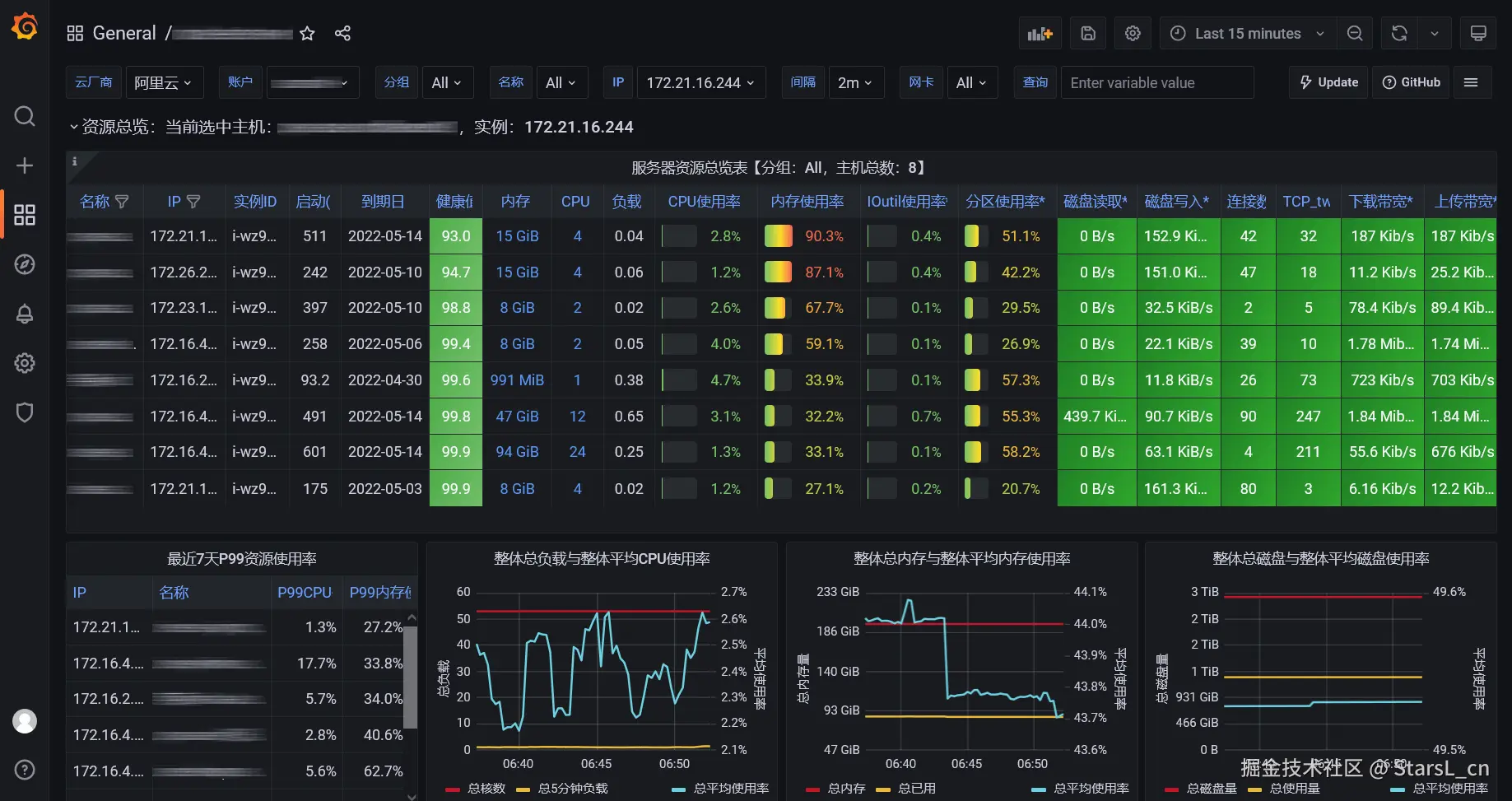 ✔设计了多个支持同步的各字段展示的Node_Exporter、Mysqld_Exporter、Redis_Exporter Grafana看板。