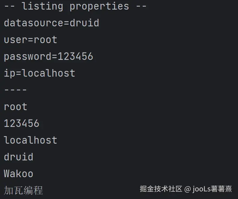 System.out.println(properties.get("password")); //123456