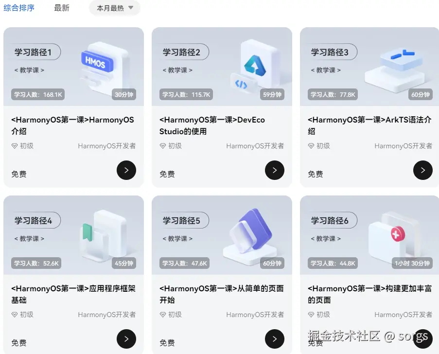 - 《快速入门》通过 12 篇连贯的 Codelabs 和对应的课程,手把手教开发者从 0 开始,开发出一个 HarmonOS 应用