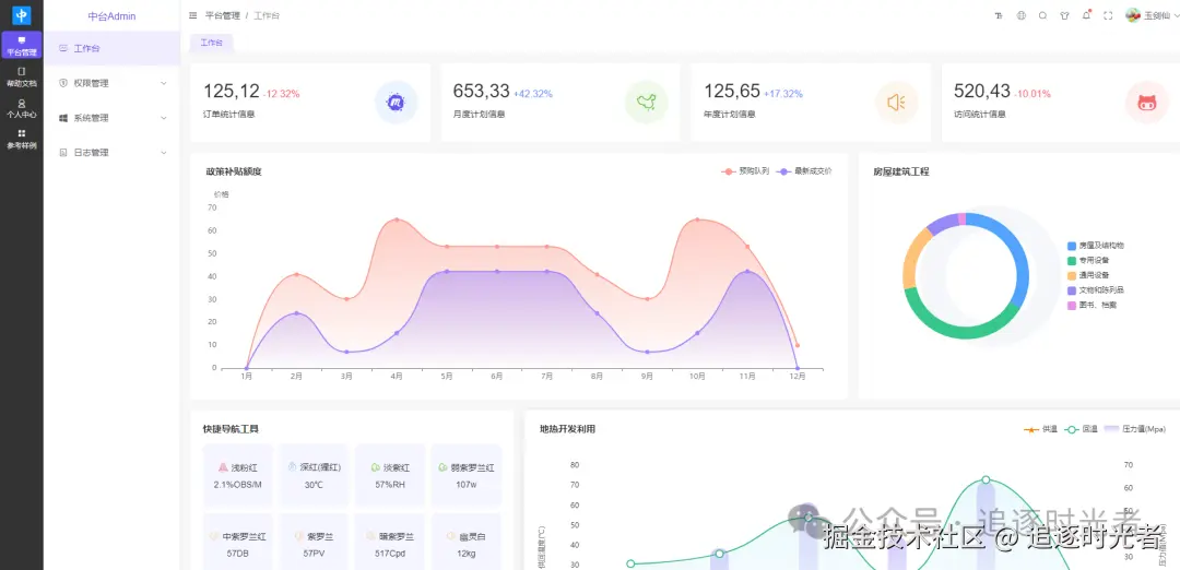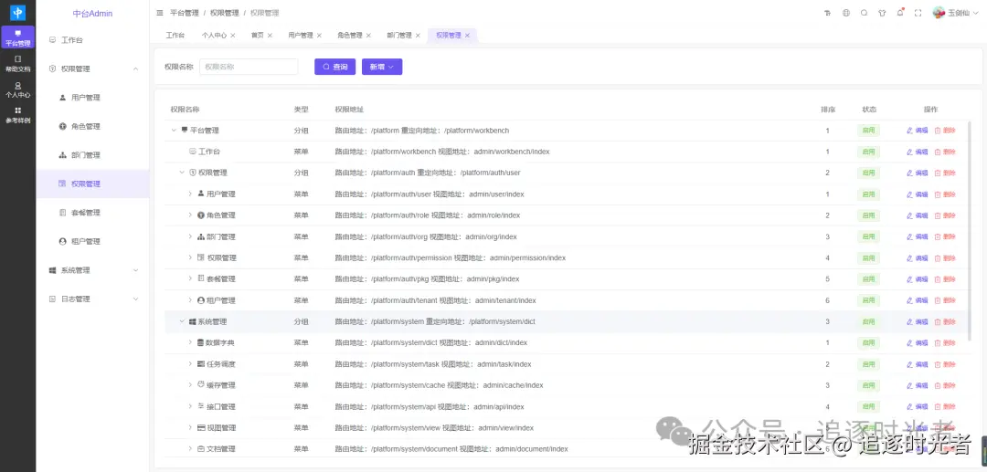 中台Admin(Admin.Core)是前后端分离权限管理系统,前端 UI 基于Vue3开发,后端 Api 基于.NET 8.0开发。支持多租户、接口权限、数据权限、动态 Api、任务调度、OSS 文件上传、滑块拼图验证、国内外主流数据库自由切换和动态高级查询。集成统一认证授权、事件总线、数据验证、分布式雪花Id、分布式缓存、分布式事务、IP 限流、性能分析、集成测试、健康检查、接口文档等。
