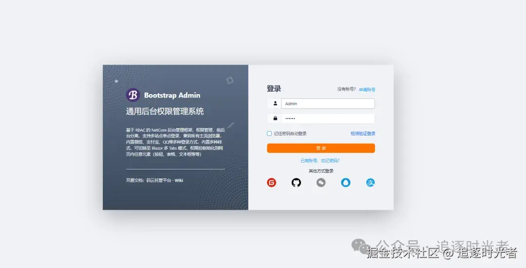 BootstrapAdmin是一个基于Bootstrap Blazor开源的.NET通用后台权限管理系统,后台管理页面兼容所有主流浏览器,完全响应式布局(支持电脑、平板、手机等所有主流设备),可切换至 Blazor 多 Tabs 模式,权限控制细化到网页内任意元素(按钮、表格、文本框等等)