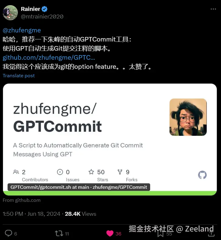 几个月前,受到一篇推文的启发 x.com/mtrainier20… ,我突然想到可以借助 git alias 添加一些小命令,加速我的 git workflow 流程,于是我花了两个小时的时间进行工程封装,并发布了 pypi 包,并分享到了 V2EX 上: www.v2ex.com/t/1052254 。