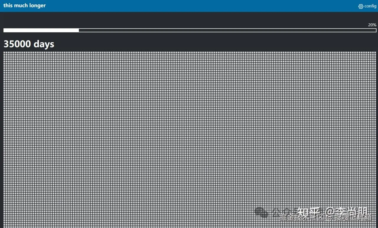 生命倒计时这个网站,支持自己设置自己的寿命,让你我真正做一次生命的主人,在网站输入框中输入自己的真实出生年月日,即可快速算出来我们的生命距离终点还有多远,这个距离会以天、星期、月、年为单位画成方格,剩余方格越多表示时间越久。