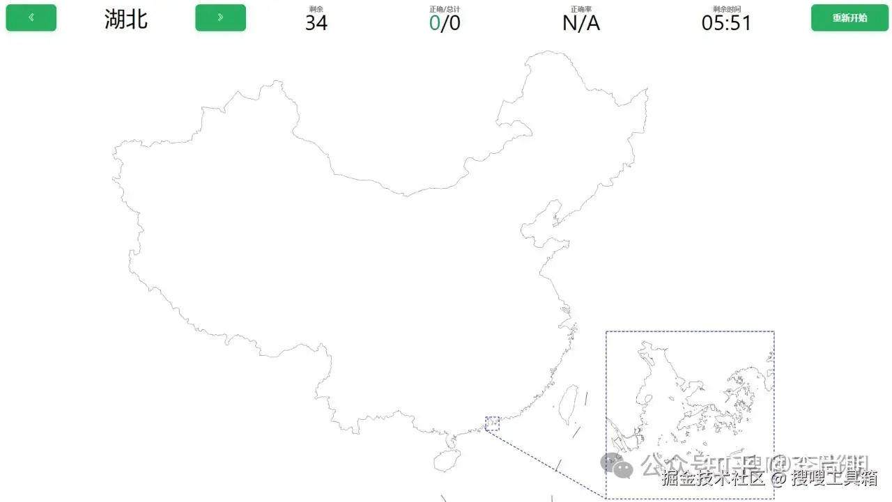 这个网站很有意思,如果上学时老师用这个网站教我们学习地理省份分布,我想兴趣应该会被调动起来吧,一个测试你对中国地图熟练程度的网站,从这个网站我们可以看出来,其实学习和娱乐是可以统一起来的,而且运用好了工具会让原本枯燥复杂的知识变得很有趣,如果小伙伴儿家里有宝宝,这个网站推荐给你,周末正好可以和孩子PK一下,看看能不能