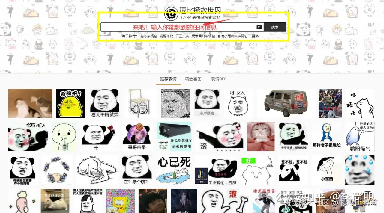在网站的输入框中你可以输入任何你想找的表情包,当然如果实在想不起来,选择关键词标签也行,相关的表情包也会马上展示在你的眼前,有些小伙伴儿喜欢自己制作,也没问题,点击你喜欢的某一个表情包,然后点击它就可以自行编辑了,简单实用,有必要收藏!
