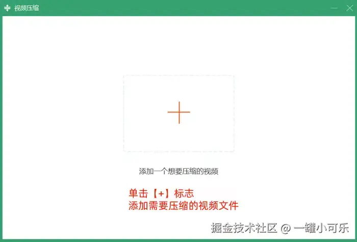 步骤2:在视频文件添加界面,单击【+】标志,添加需要压缩的视频文件。