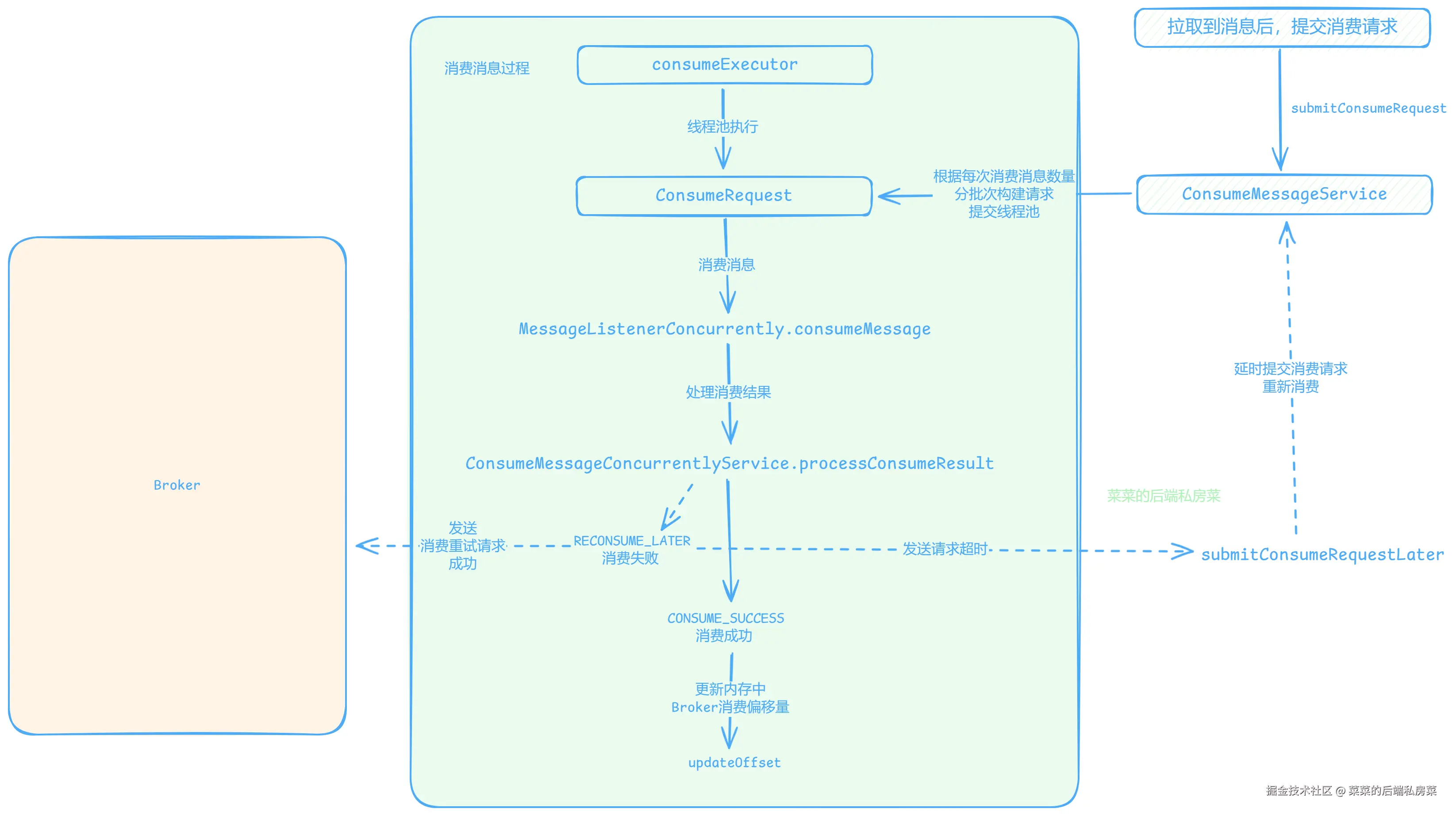 (在此期间还会封装上下文,执行消费前、后的钩子方法,记录消费耗时等操作)