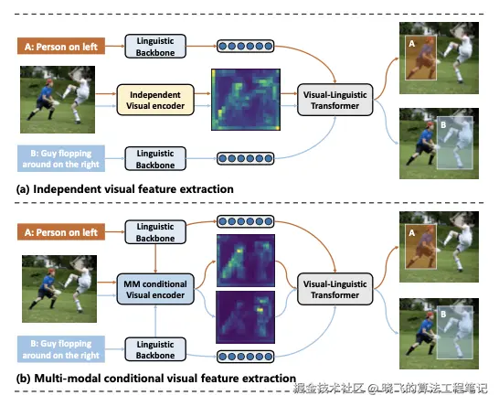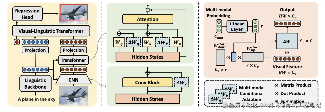 基于视觉编码器(卷积层和Transformer层),进一步提出了多模态条件Transformer和多模态条件卷积,用于将MMCA应用于视觉定位中。