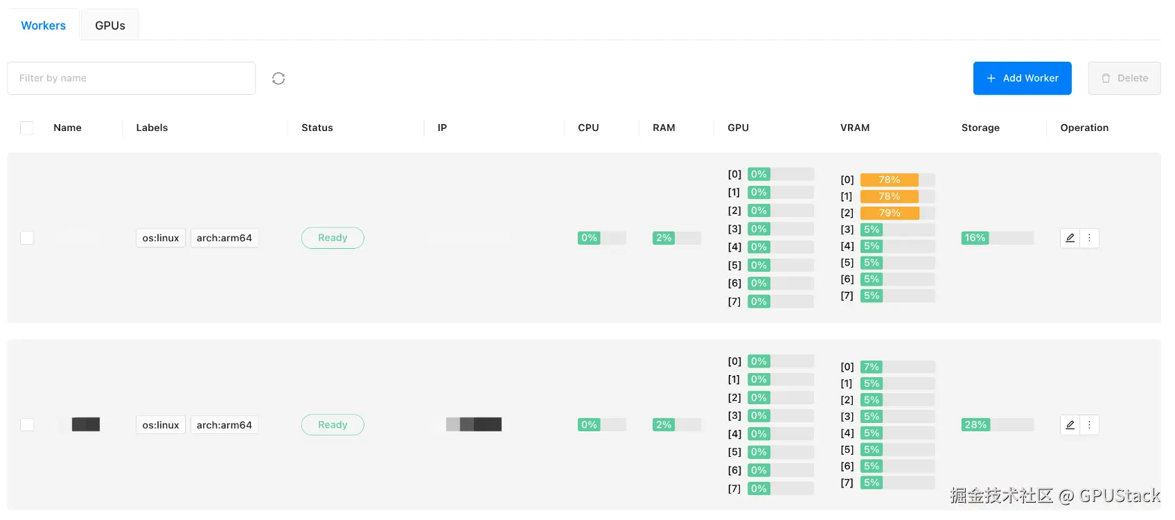 异构 GPU 支持:支持异构 GPU 资源,当前支持 Nvidia、Apple Metal、华为昇腾和摩尔线程等各种类型的 GPU/NPU