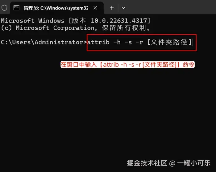 注意:【文件夹路径】即输入被隐藏的文件夹的完整的路径即可。
