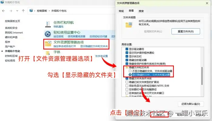 如何取消隐藏文件夹?电脑的控制面板中提供恢复隐藏文件夹的功能,我们可以在控制面板中点击并打开【文件资源管理器】,选择【查看】的选项,勾选【显示隐藏的文件夹】,并点击【确定】即可。