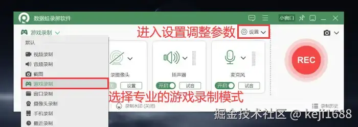 游戏录制软件1:数据 蛙录屏软件