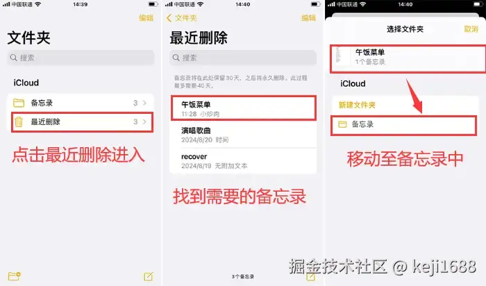 所以,一旦您发现备忘录被误删,应立即打开备忘录应用,滑动到底部找到【最近删除】选项,并查看是否有您需要的备忘录。若有,只需将删除的备忘录移动回到备忘录文件夹中即可。此方法简便快捷,但需注意时间限制,超过30天的数据将无法在此找回。