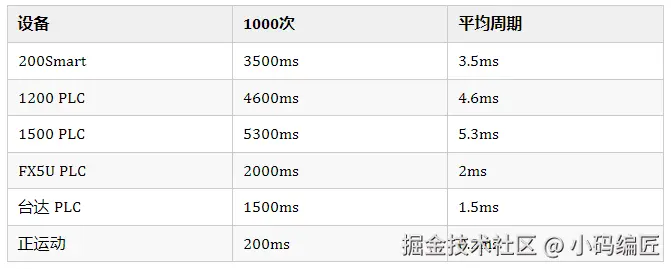 下面这张图,是使用ModbusTCP与各种PLC及板卡通信结果,实测结果,没有好坏贬低。