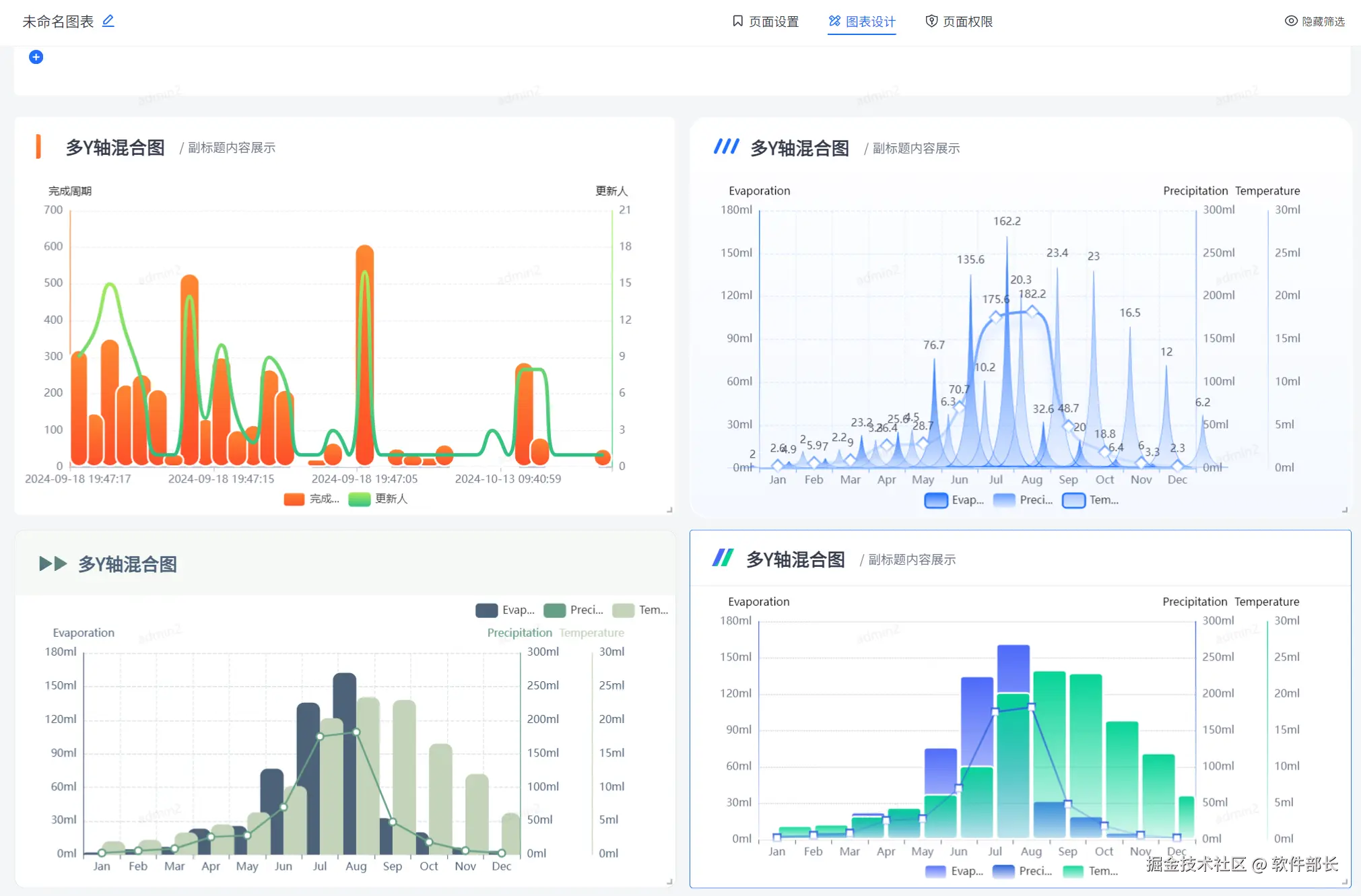 多Y轴线柱混合图是一种结合了多个Y轴和柱状图特性的数据可视化图表类型,它允许在同一图表中展示具有不同量纲或不同数量级的数据,每个数据系列都对应一个Y轴,而X轴则用于表示数据的类别或时间点。