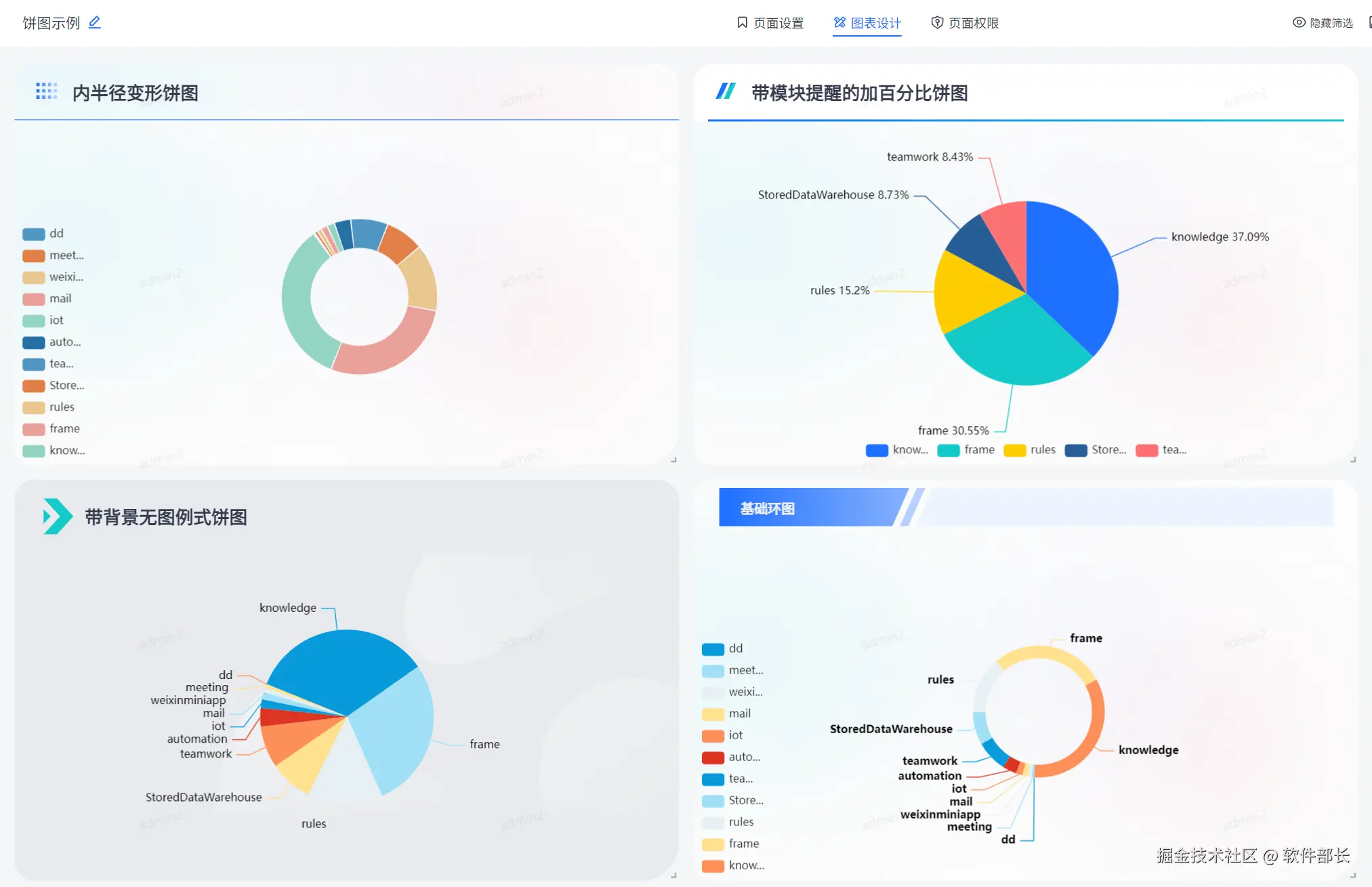 - 适合展示较少类别的数据(一般建议不超过6个类别)。
