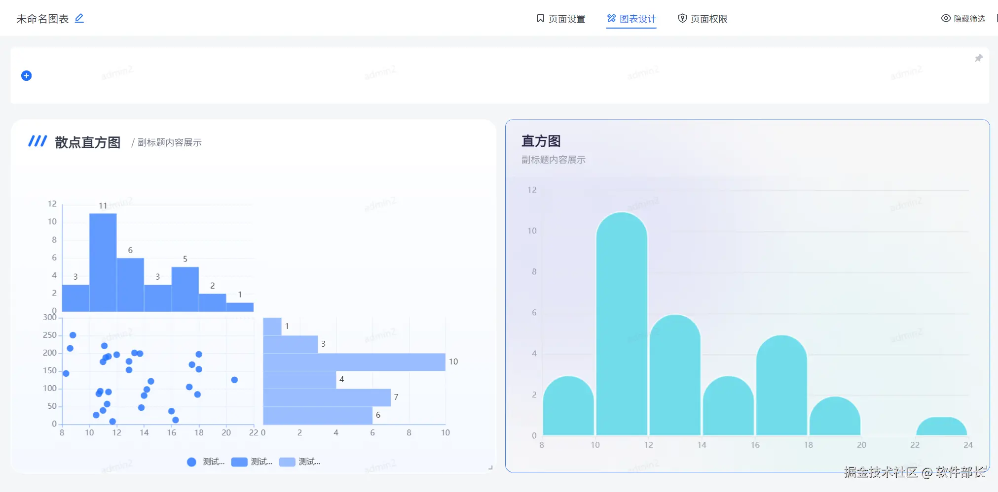 直方图主要用于展示数据分布情况的可视化图表,通过将被分析数据划分为多个区间,检测统计在区间中的数据的量,从而呈现出数据在某个空间分布中的分布特性,每个区间的计数量称之为 “频数”。