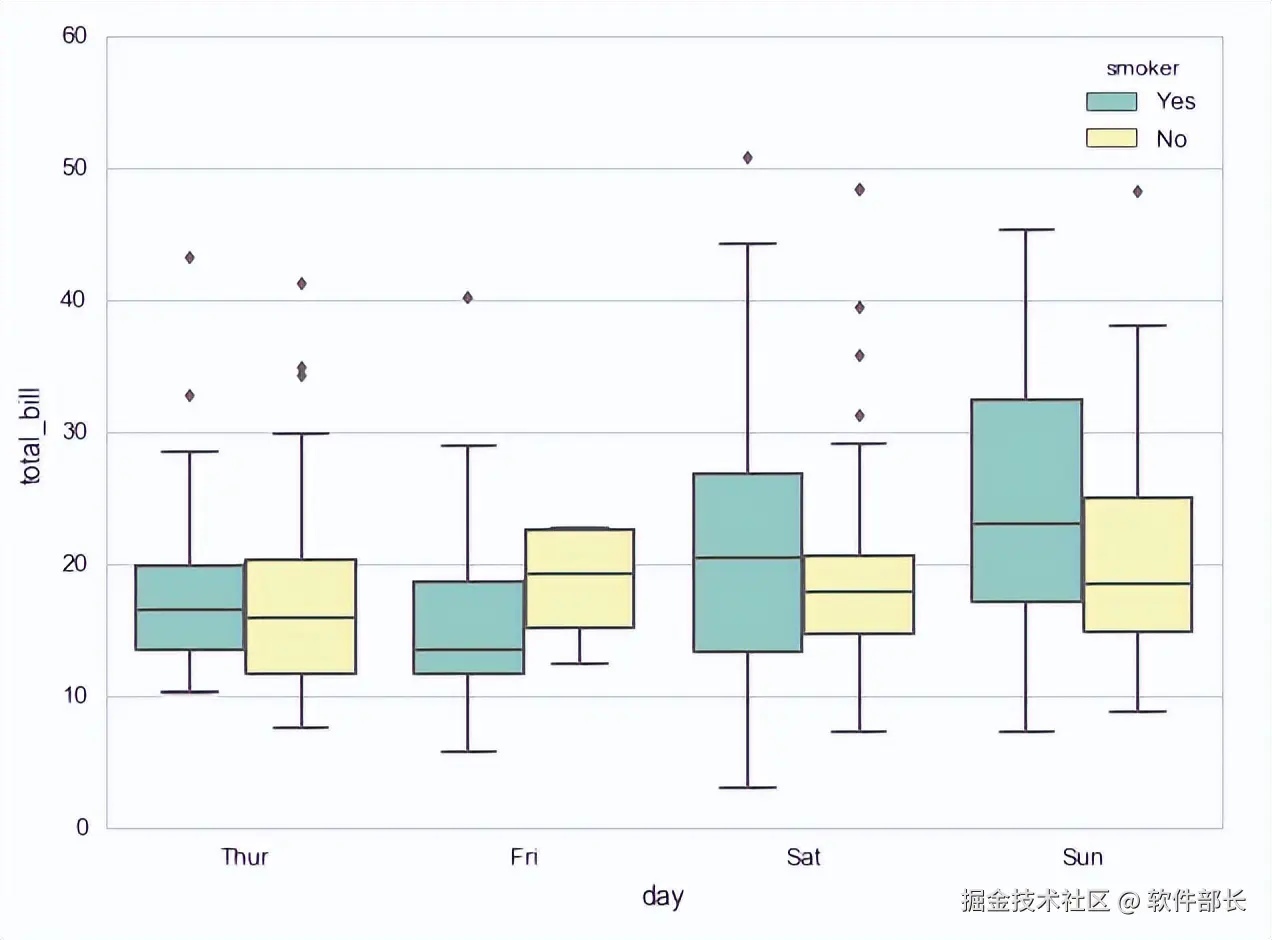 箱线图通过显示数据的五个统计量(最小值、第一四分位数、中位数、第三四分位数和最大值)来总结数据的分布情况。这种图表类型非常适合用于展示数据的离散程度和分布情况。