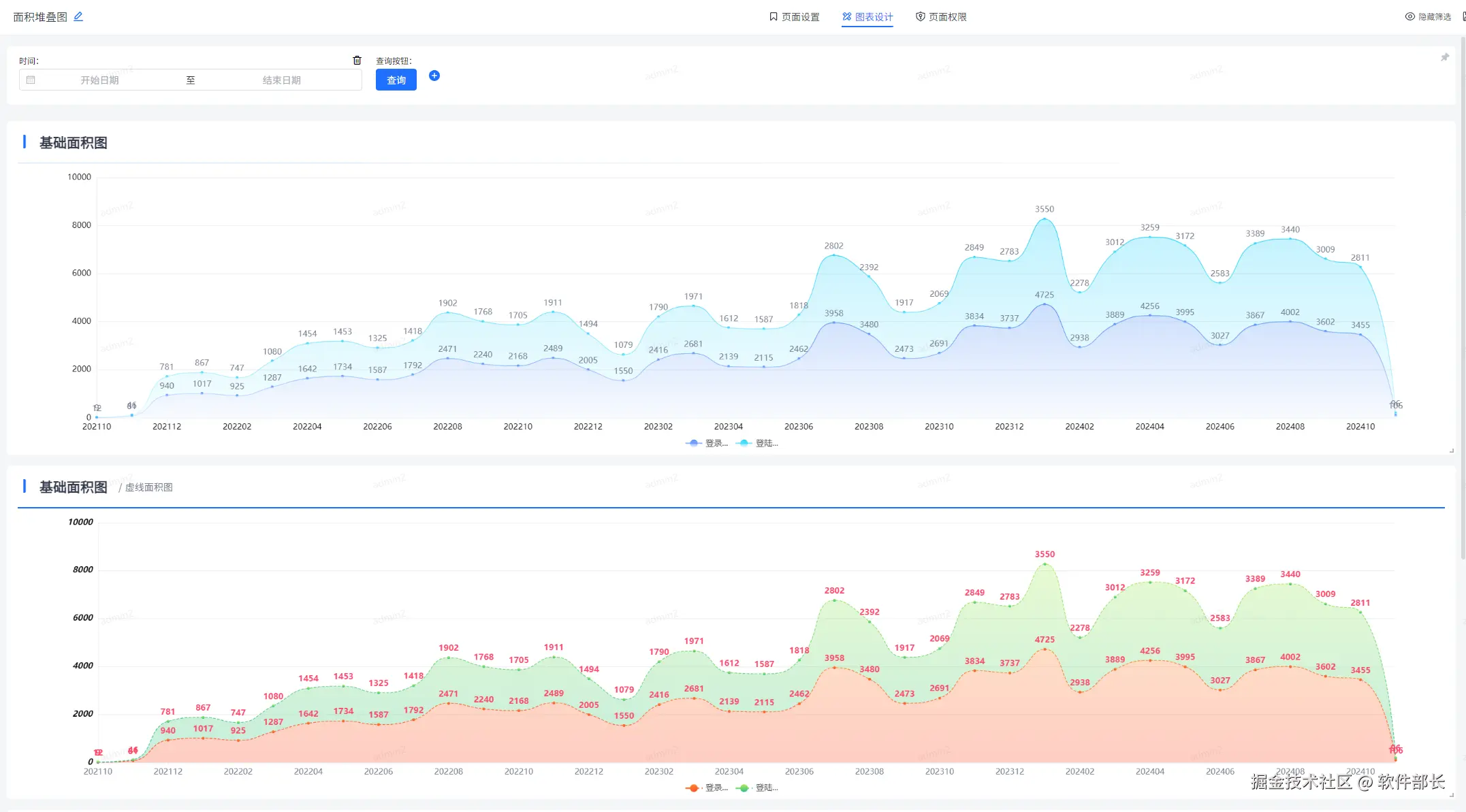 面积图类似于折线图,但折线下的区域被填充颜色,形成面积。这种图表类型不仅可以展示数据的变化趋势,还能强调数据总量随时间的变化。