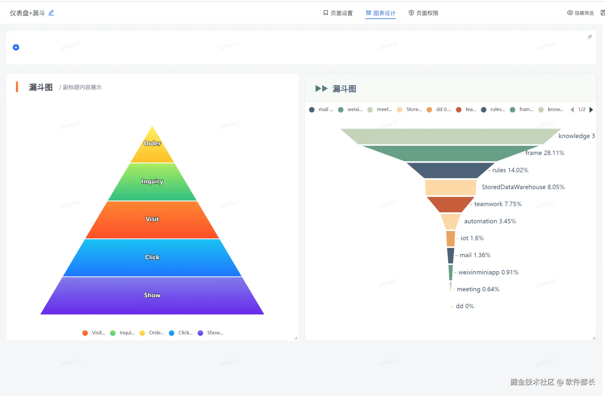 漏斗图通常用于展示业务流程或销售漏斗的情况。它用梯形面积表示某个环节业务量与上一个环节之间的差异,从而揭示业务流程中的转化率和效率问题。