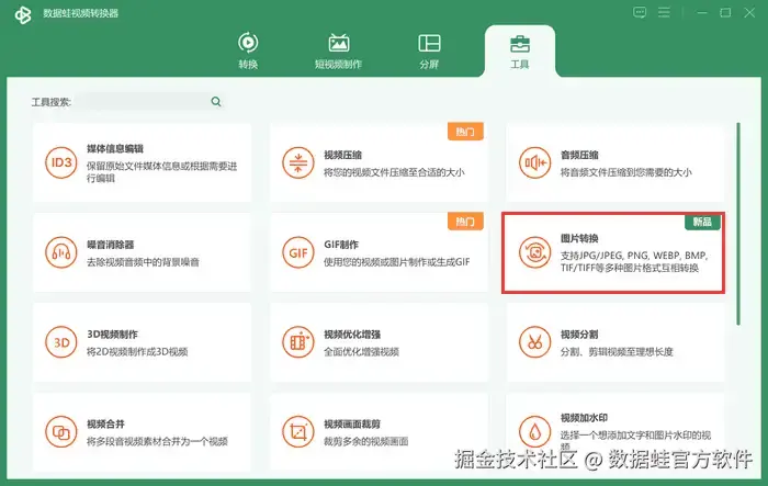第一步: 启动软件之后,进入 【工具】 选项卡,在该界面中,点击 【图片转换】 选项进入功能界面。