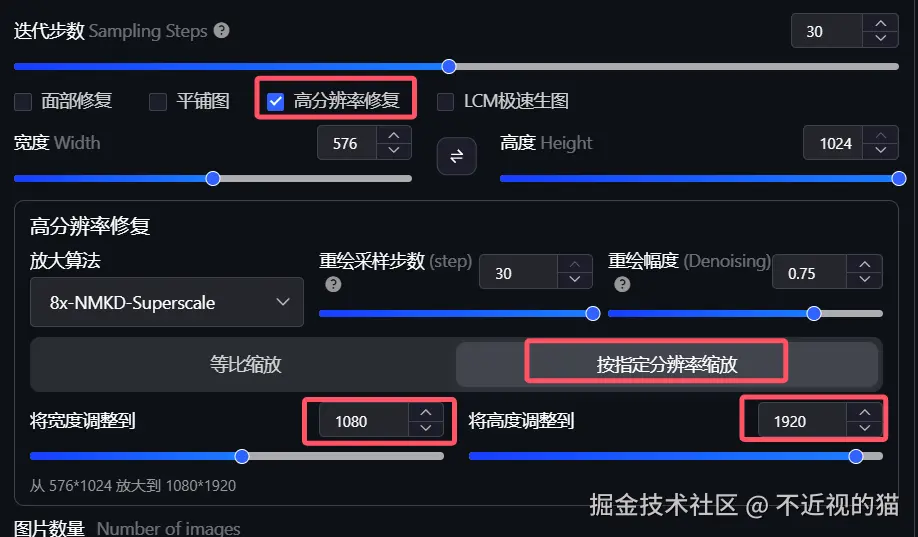 但是,你可以勾选高分辨率修复,这样就能把生成的图变成大图了,不过这样就得花更多积分,目前我们只是测试,可以不用这样。