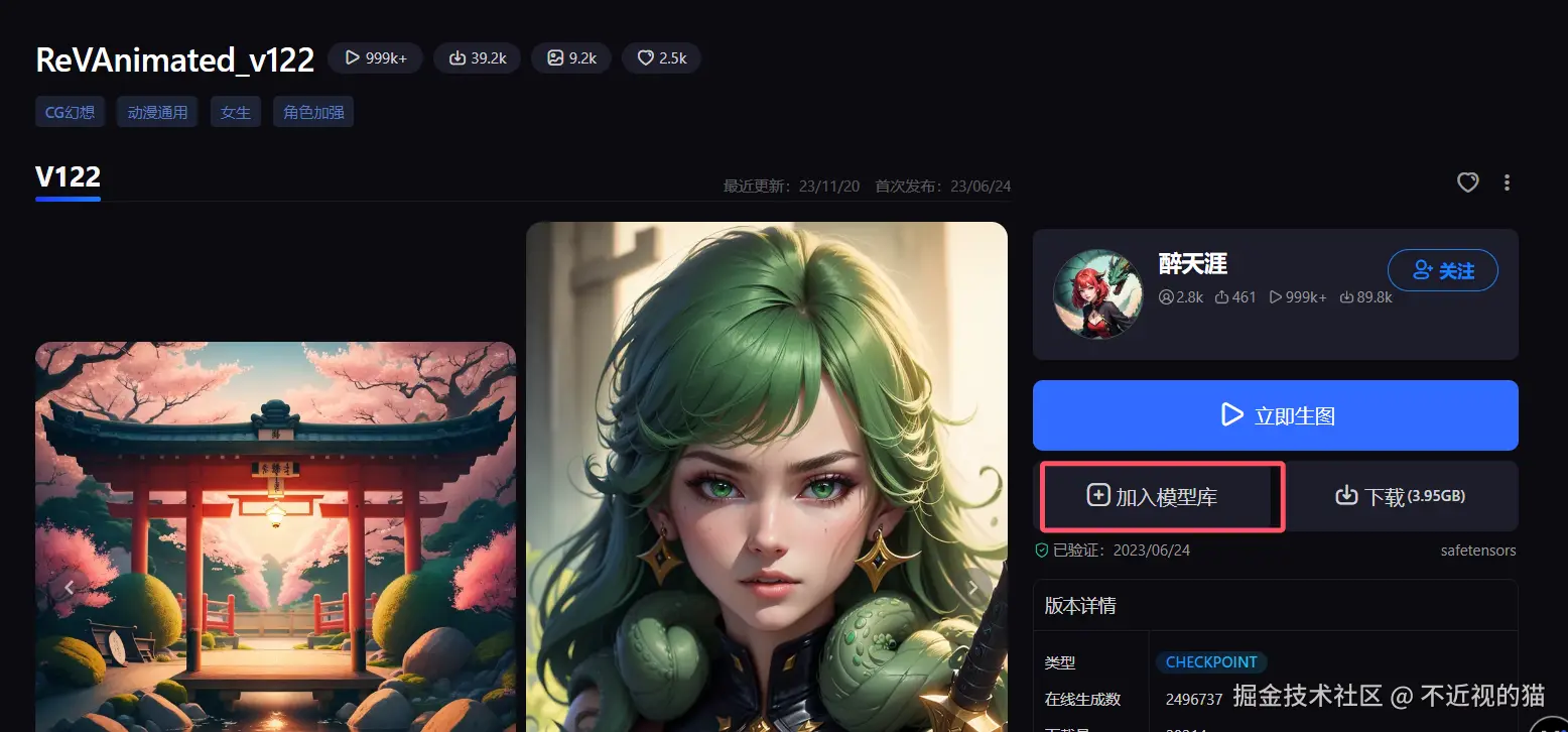由于官方默认带的模型没有 ReVAnimated_v122,而我们又需要它,所以得先把它加入我们的模型库中: