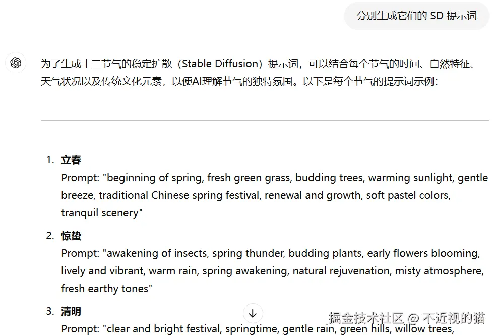 等等,我们忘了搞提示词了,去问问GPT生成下: