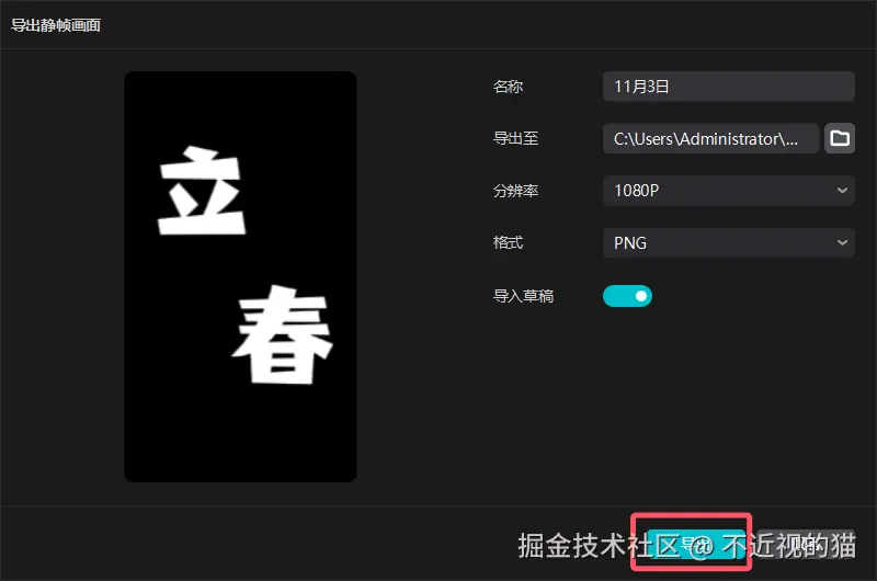 导出静止帧画面: