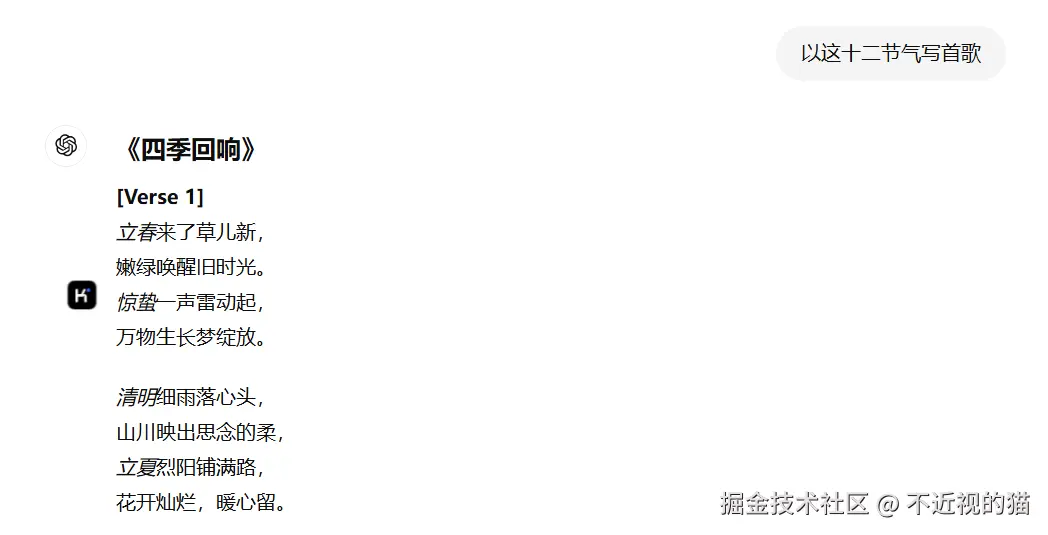 音频方面,我打算使用 AI 音乐,所以让GPT 帮我生成下歌词: